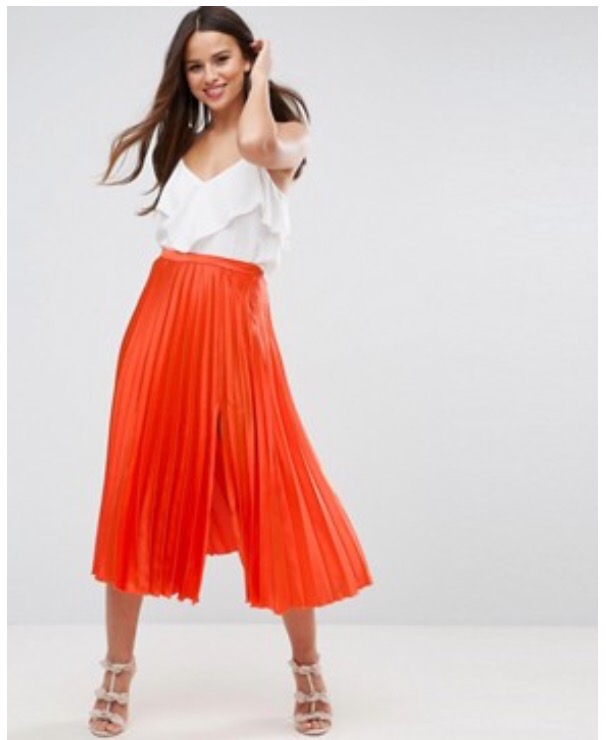 Asos satin pleated skirt £35 http://m.asos.com/asos/asos-satin-pleated-midi-skirt-with-thigh-split/prd/7959109?iid=7959109&clr=Orange&SearchQuery=Satin%20pleated%20skirt&pgesize=13&pge=0&totalstyles=13&gridsize=2&gridrow=3&gridcolumn=2