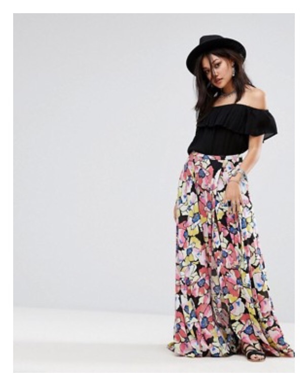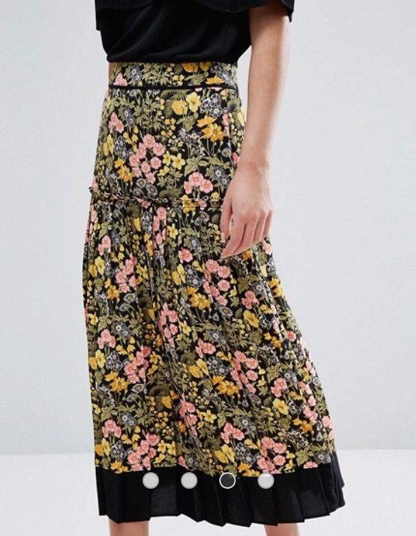 Asos Warehouse pleated maxi print skirt £49 http://m.asos.com/warehouse/warehouse-floral-print-contrast-maxi-skirt/prd/7514096?iid=7514096&clr=Black&SearchQuery=floral%20maxi%20skirt&pgesize=27&pge=0&totalstyles=27&gridsize=2&gridrow=7&gridcolumn=1