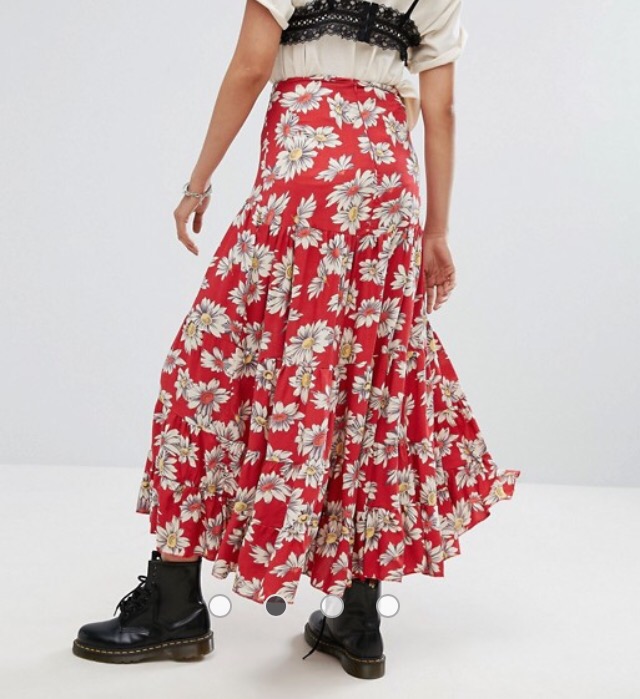 Asos Milk It vintage maxi skirt £45 http://m.asos.com/milk-it/milk-it-vintage-tiered-festival-maxi-skirt-in-floral-print/prd/8328820?iid=8328820&clr=Red&SearchQuery=maxi%20skirt&pgesize=50&pge=0&totalstyles=263&gridsize=2&gridrow=5&gridcolumn=1