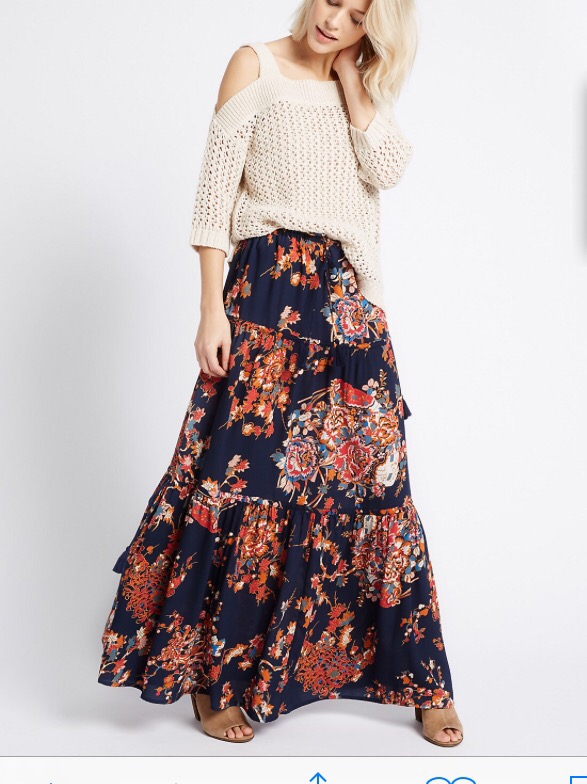 M&S Tiered maxi skirt £35 http://www.marksandspencer.com/tiered-ditsy-print-a-line-maxi-skirt/p/p60113815?image=SD_01_T59_4735_Y4_X_EC_90&color=BLACKMIX&prevPage=plp