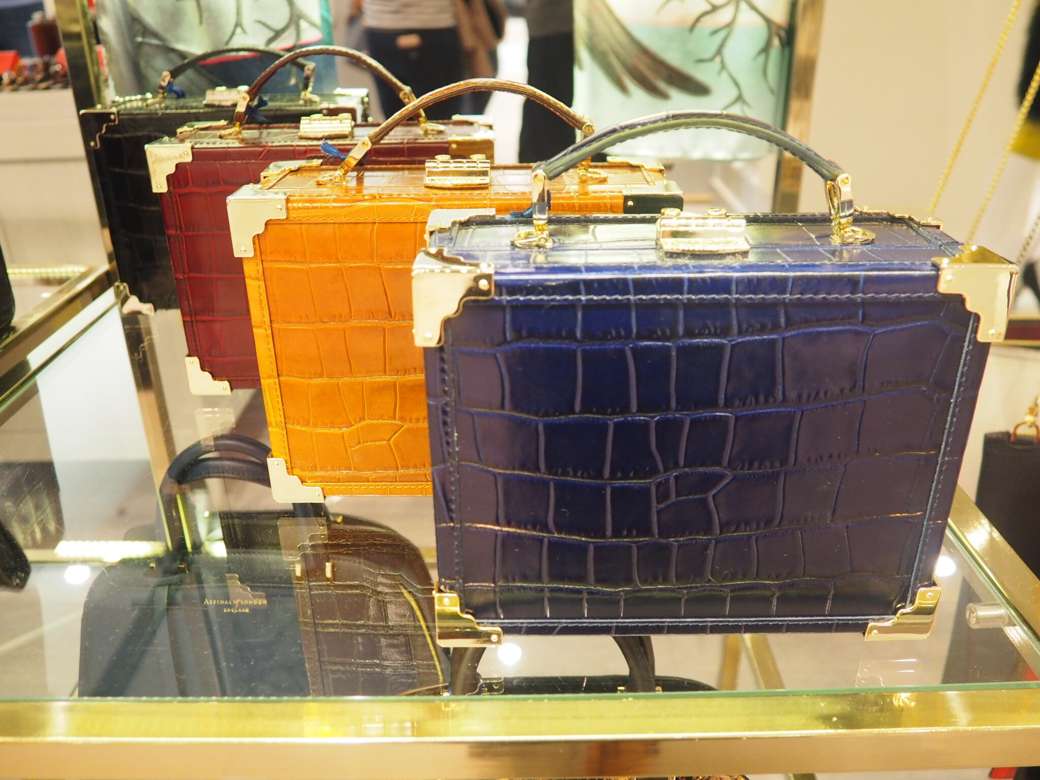 Above is The Dockery in deep shine bordeaux croc at £895 also available in other colours. https://www.houseoffraser.co.uk/bags-and-luggage/aspinal-of-london-the-dockery-small-frame-bag/d737804.pd#254776710