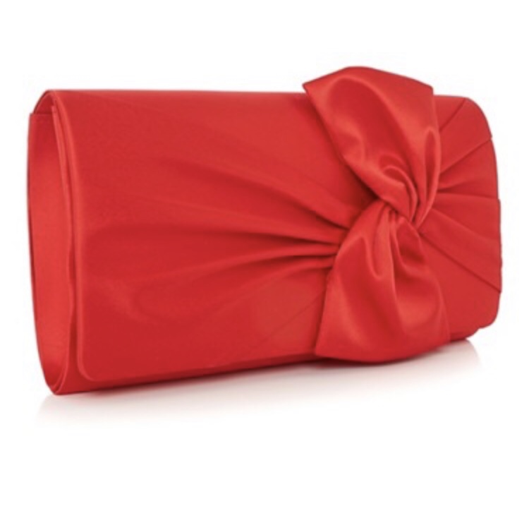 Red satin knot clutch DEBENHAMS