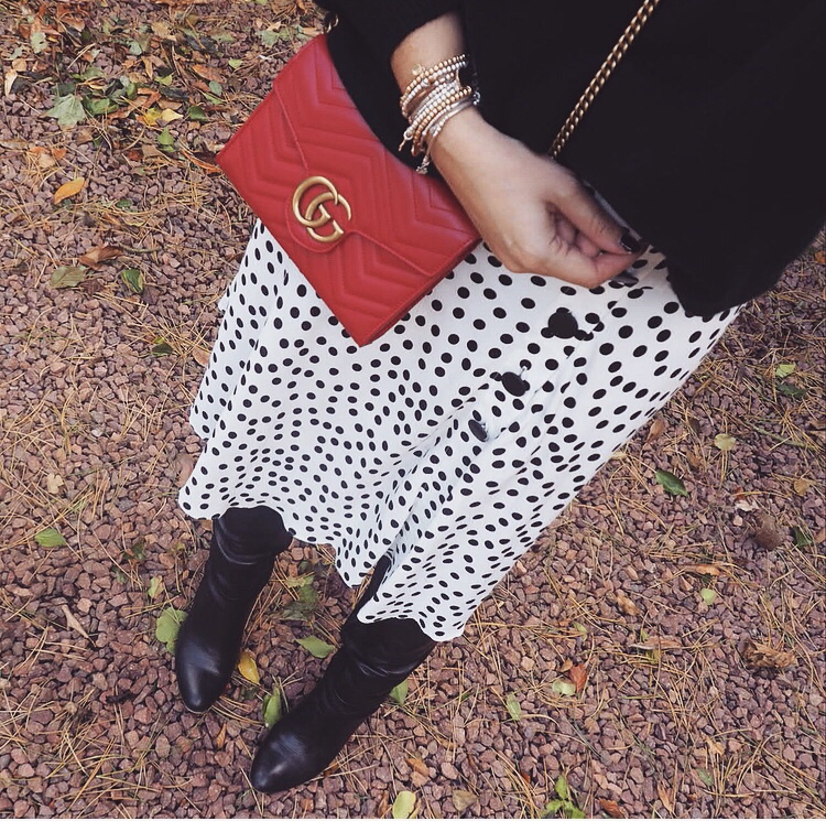 The midi skirt and knee high boot is back in full force for autumn/winter. Team them with oversized chunky knits and you get that whole 70’s vibe, which I’m loving at the minute.